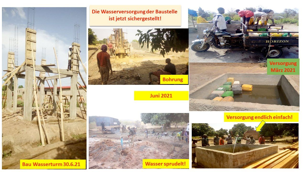 Der Brunnenbau konnte in der Zwischenzeit fast komplett abgeschlossen werden. Der Brunnen soll solar betrieben werden und hat zwei 5000 Liter Zisternen, die kontinuierlich gefüllt werden können. Damit steht den Kindern und Bürgern bereits vor Fertigstellung der Kinder- und Krankenstation Trinkwasser zur Verfügung.