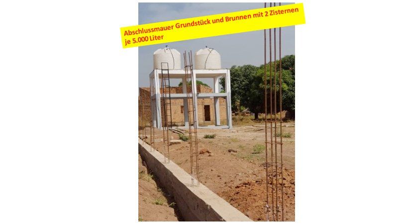 Entre-temps, la construction du puits a pu être presque entièrement achevée. Le puits doit être alimenté par l'énergie solaire et dispose de deux citernes de 5000 litres qui peuvent être remplies en continu. Ainsi, les enfants et les citoyens disposent déjà d'eau potable avant l'achèvement du centre pédiatrique et médical.